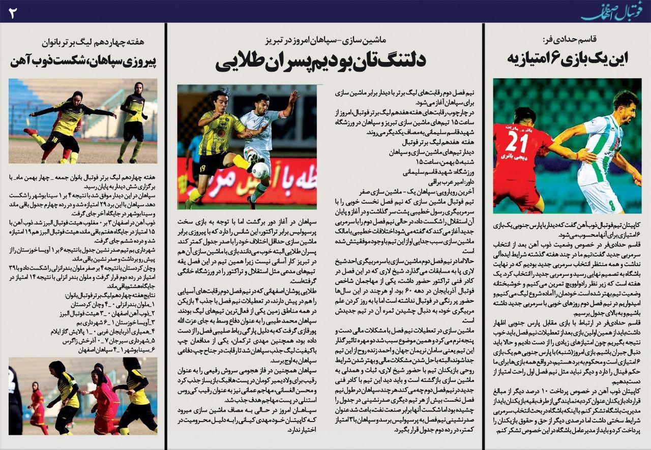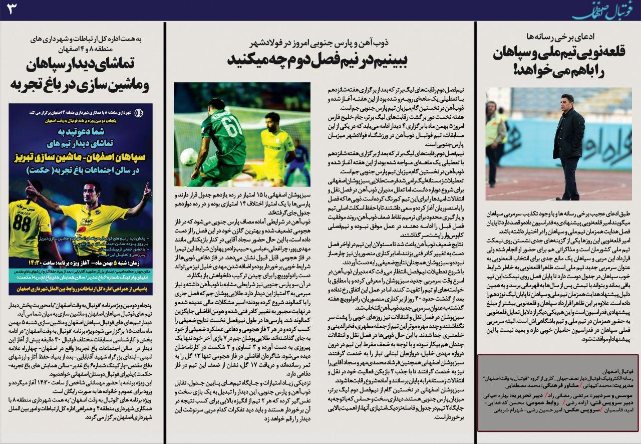 شماره 389 روزنامه الکترونیک فوتبال اصفهان شنبه 4 بهمن 98 روزنامه الکترونیک فوتبال اصفهان شنبه 4 بهمن 98 با محوریت پوشش اخبار تیم های فوتبال سپاهان و ذوب آهن منتشر شد.