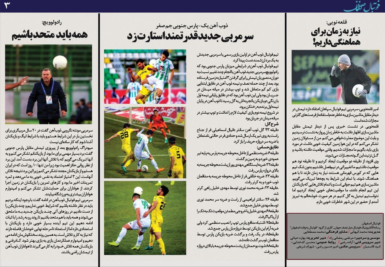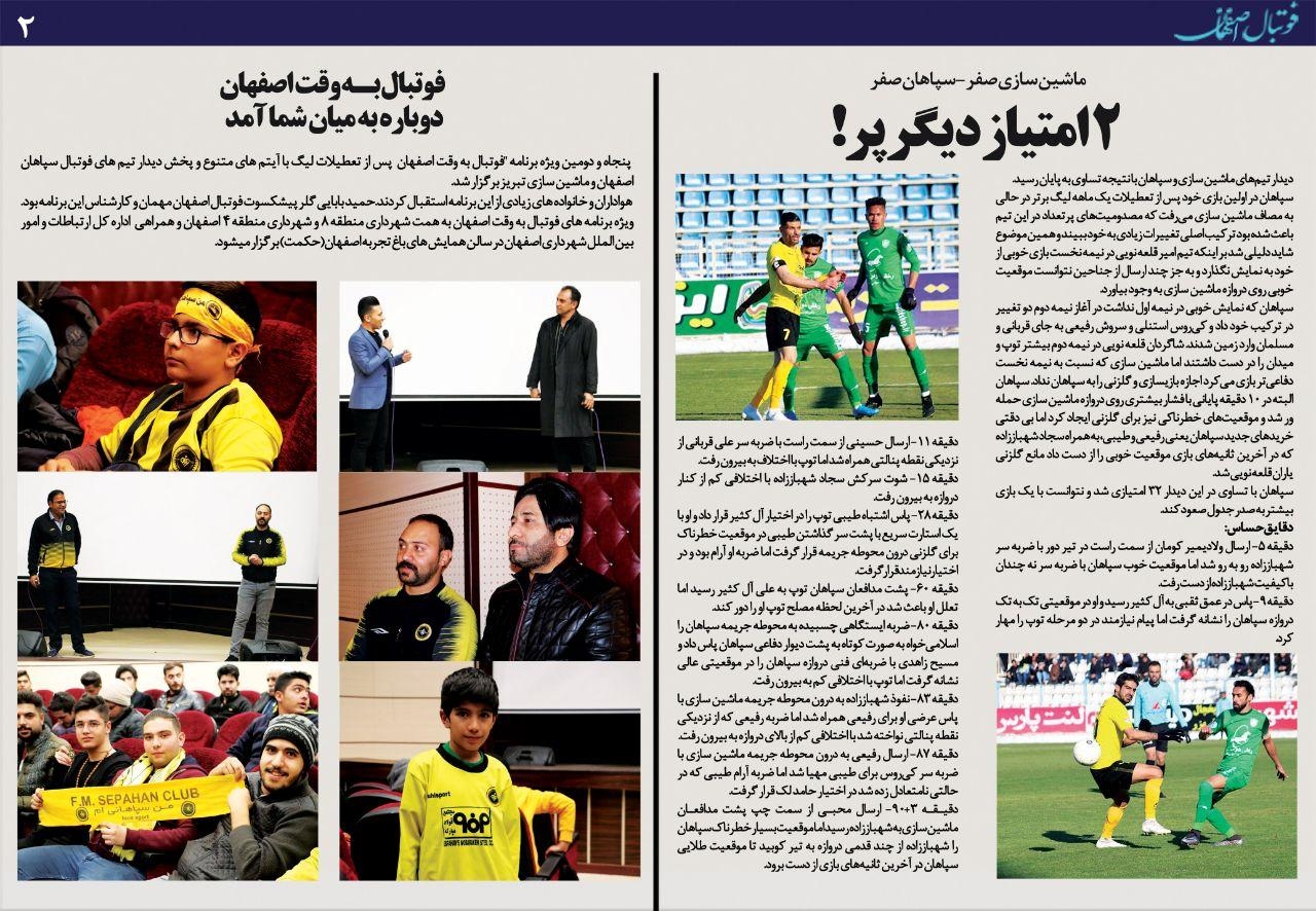 شماره 390 روزنامه الکترونیک فوتبال اصفهان یکشنبه 6 بهمن 98 روزنامه الکترونیک فوتبال اصفهان یکشنبه 6 بهمن 98 با محوریت پوشش اخبار تیم های فوتبال سپاهان و ذوب آهن منتشر شد.