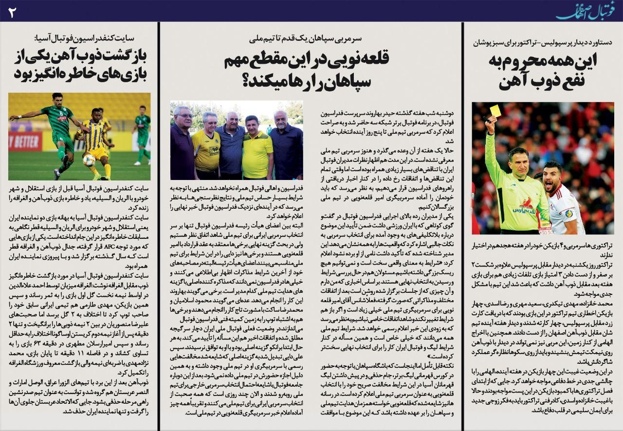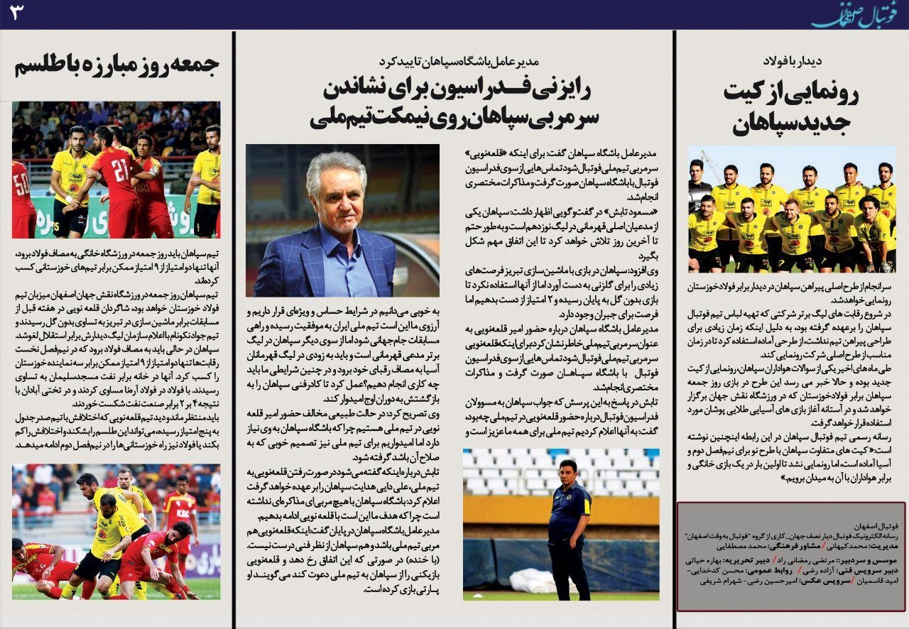 شماره 392 روزنامه الکترونیک فوتبال اصفهان سه شنبه 8 بهمن 98 روزنامه الکترونیک فوتبال اصفهان سه شنبه 8 بهمن 98 با محوریت پوشش اخبار تیم های فوتبال سپاهان و ذوب آهن منتشر شد.