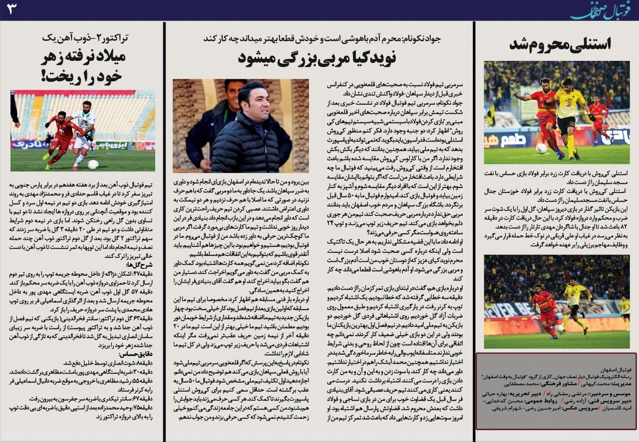 شماره ۳۹4 روزنامه الکترونیک فوتبال اصفهان شنبه 12 بهمن 98 روزنامه الکترونیک فوتبال اصفهان شنبه 12 بهمن 98 با محوریت پوشش اخبار تیم های فوتبال سپاهان و ذوب آهن منتشر شد.