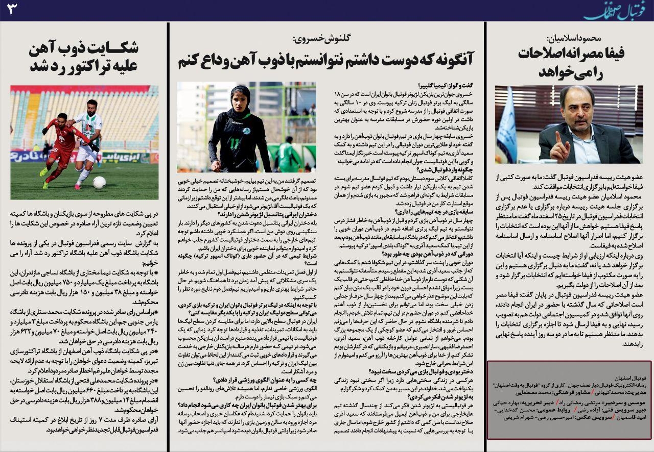 شماره 424 روزنامه الکترونیک فوتبال اصفهان سه شنبه 20 اسفند 98 روزنامه الکترونیک فوتبال اصفهان سه شنبه 20 اسفند 98 با محوریت پوشش اخبار تیم های فوتبال سپاهان و ذوب آهن منتشر شد.