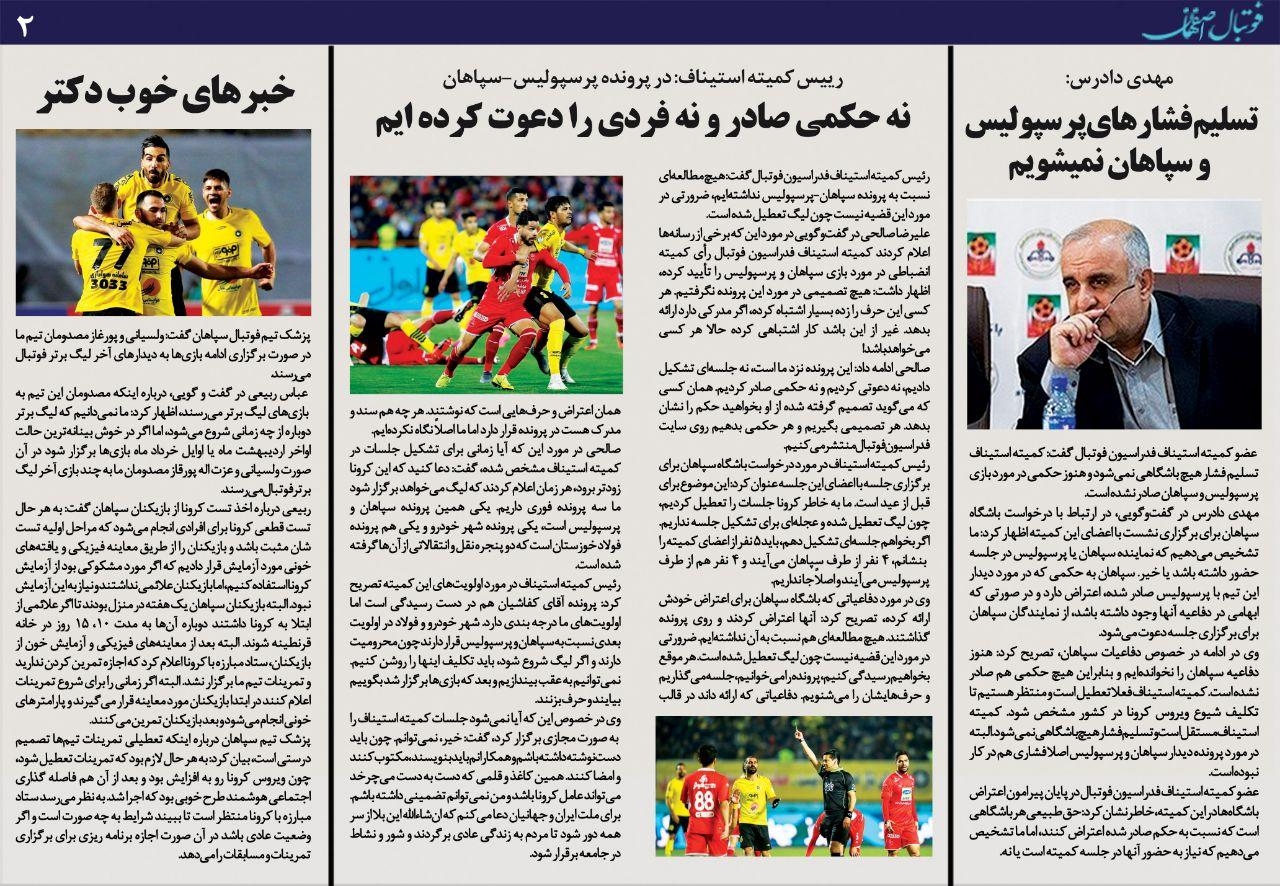 روزنامه الکترونیک فوتبال اصفهان پنجشنبه 28 فروردین 99