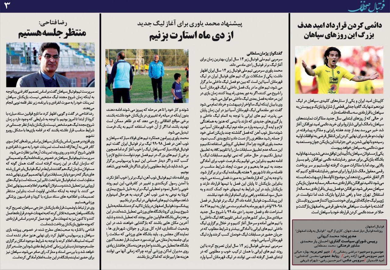 روزنامه الکترونیک فوتبال اصفهان دوشنبه 1 اردیبهشت 99