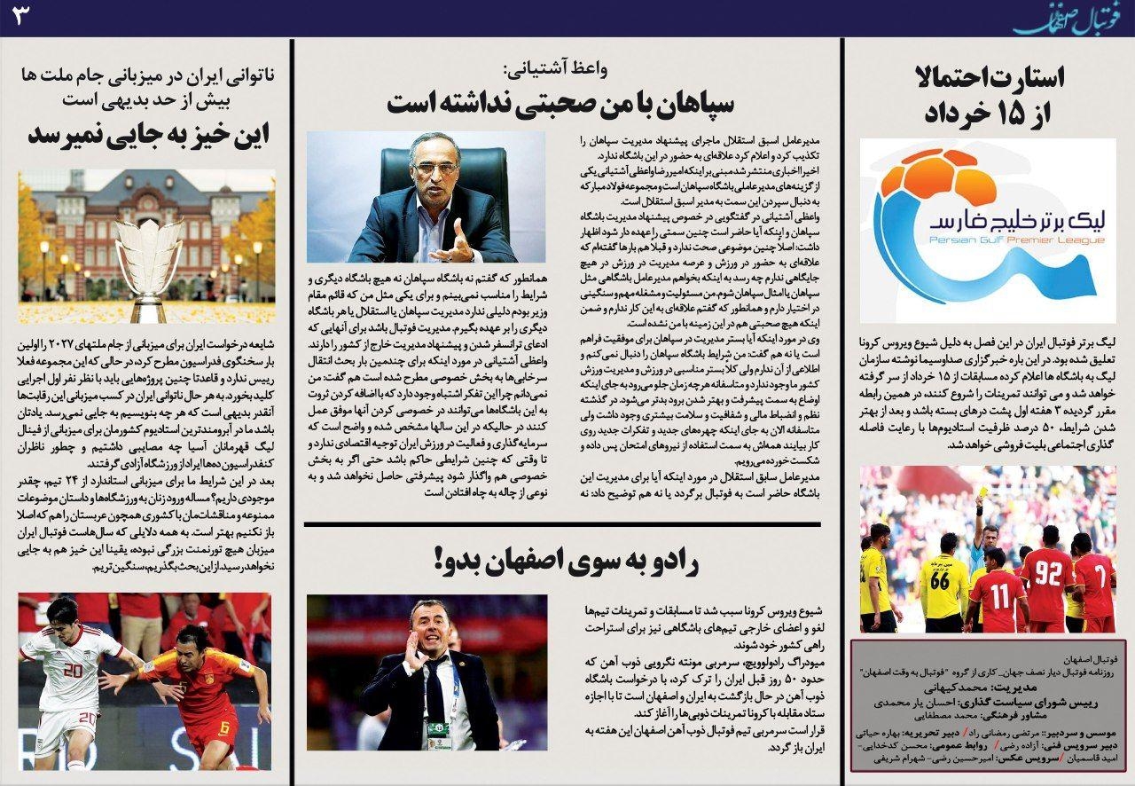 روزنامه الکترونیک فوتبال اصفهان یکشنبه 14 اردیبهشت 99