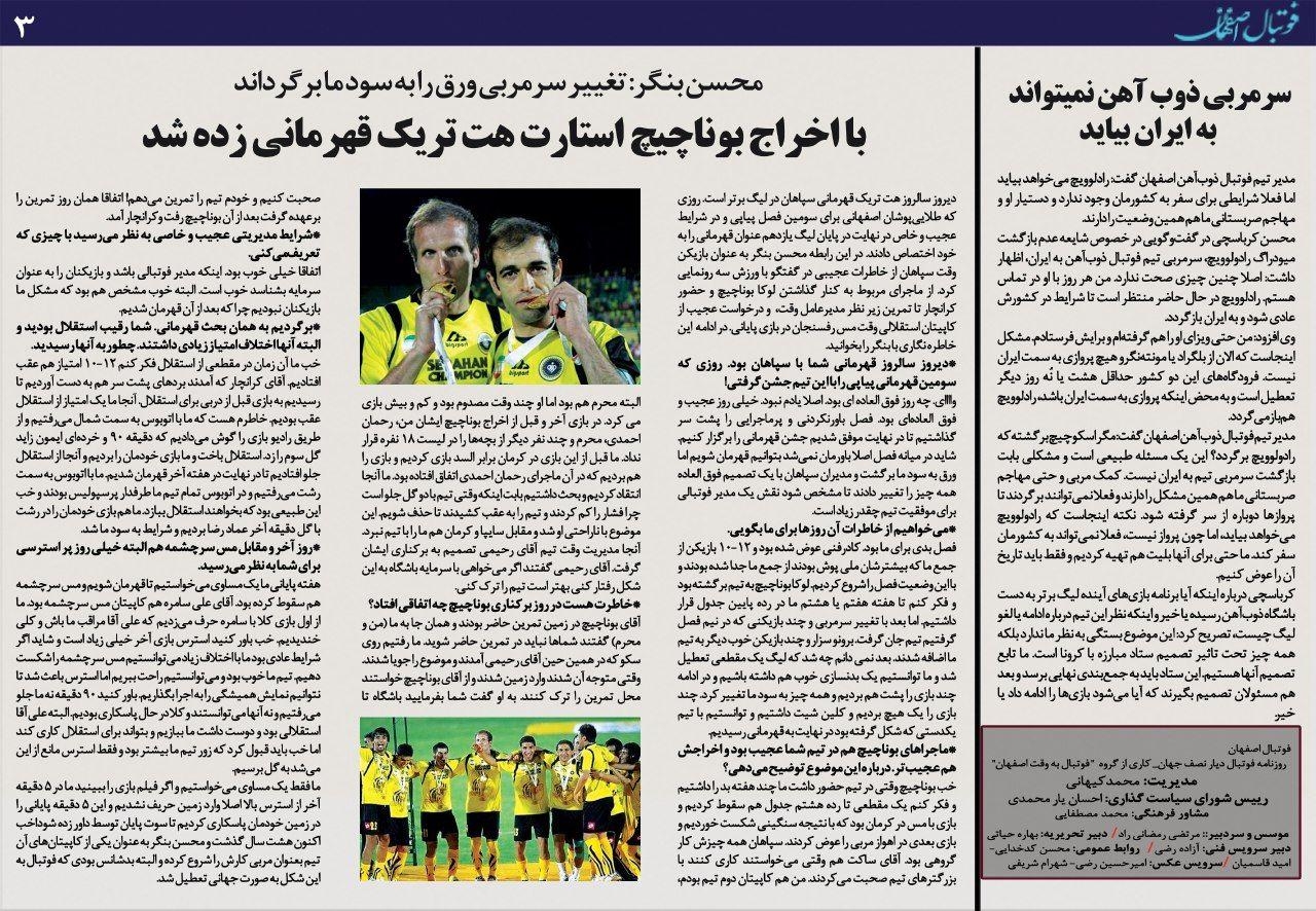 روزنامه الکترونیک فوتبال اصفهان سه شنبه23 اردیبهشت 99