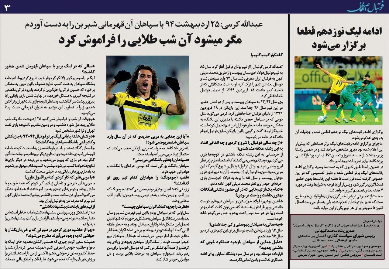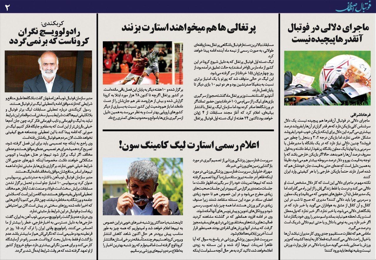 روزنامه الکترونیک فوتبال اصفهان پنجشنبه25 اردیبهشت 99