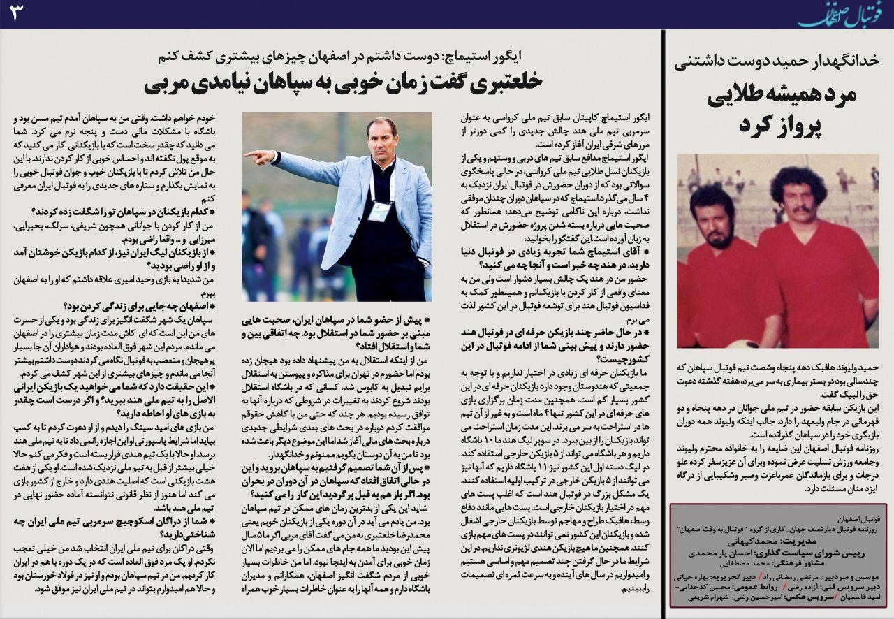 روزنامه الکترونیک فوتبال اصفهان شنبه27 اردیبهشت 99