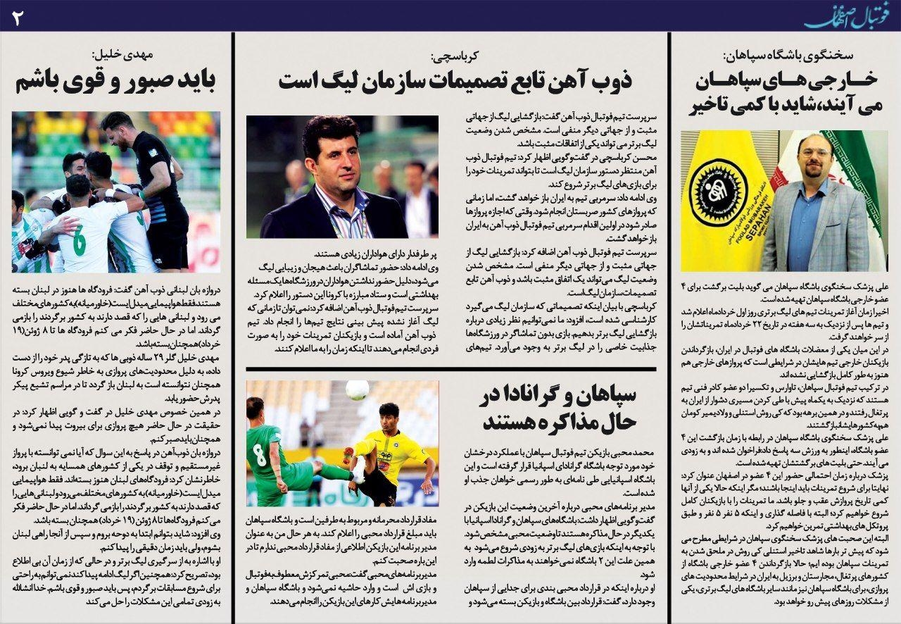 روزنامه الکترونیک فوتبال اصفهان سه شنبه30 اردیبهشت 99
