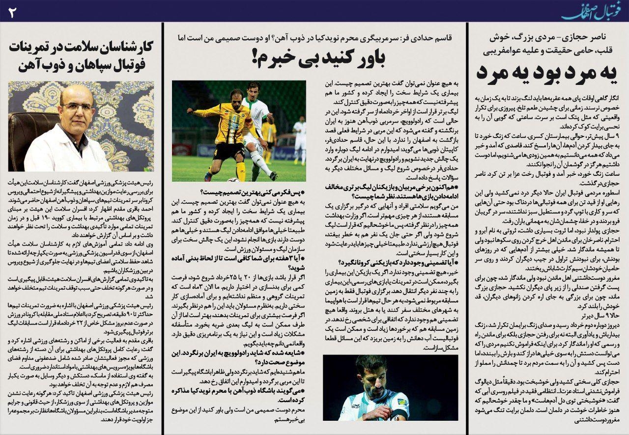 روزنامه الکترونیک فوتبال اصفهان شنبه 3 خرداد 99