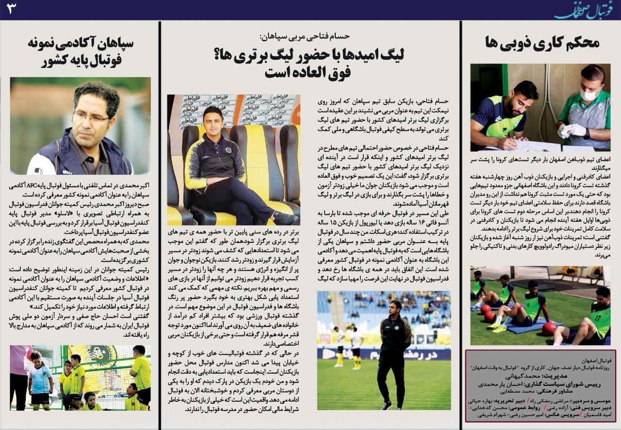 روزنامه الکترونیک فوتبال اصفهان پنجشنبه 8 خرداد 99