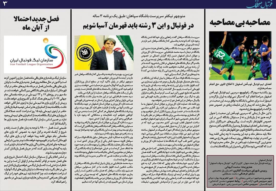 روزنامه الکترونیک فوتبال اصفهان سه شنبه20 خرداد 99