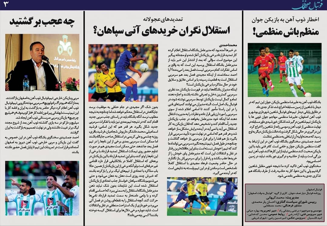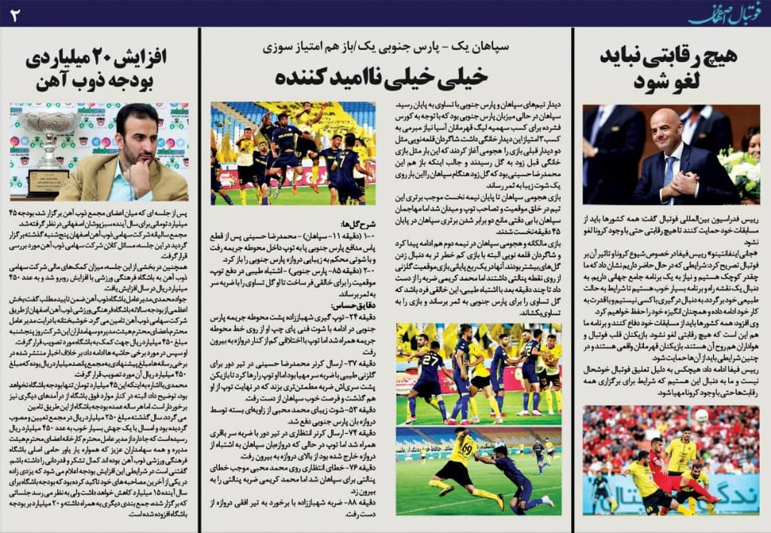 روزنامه الکترونیک فوتبال اصفهان یکشنبه 22 تیر 99
