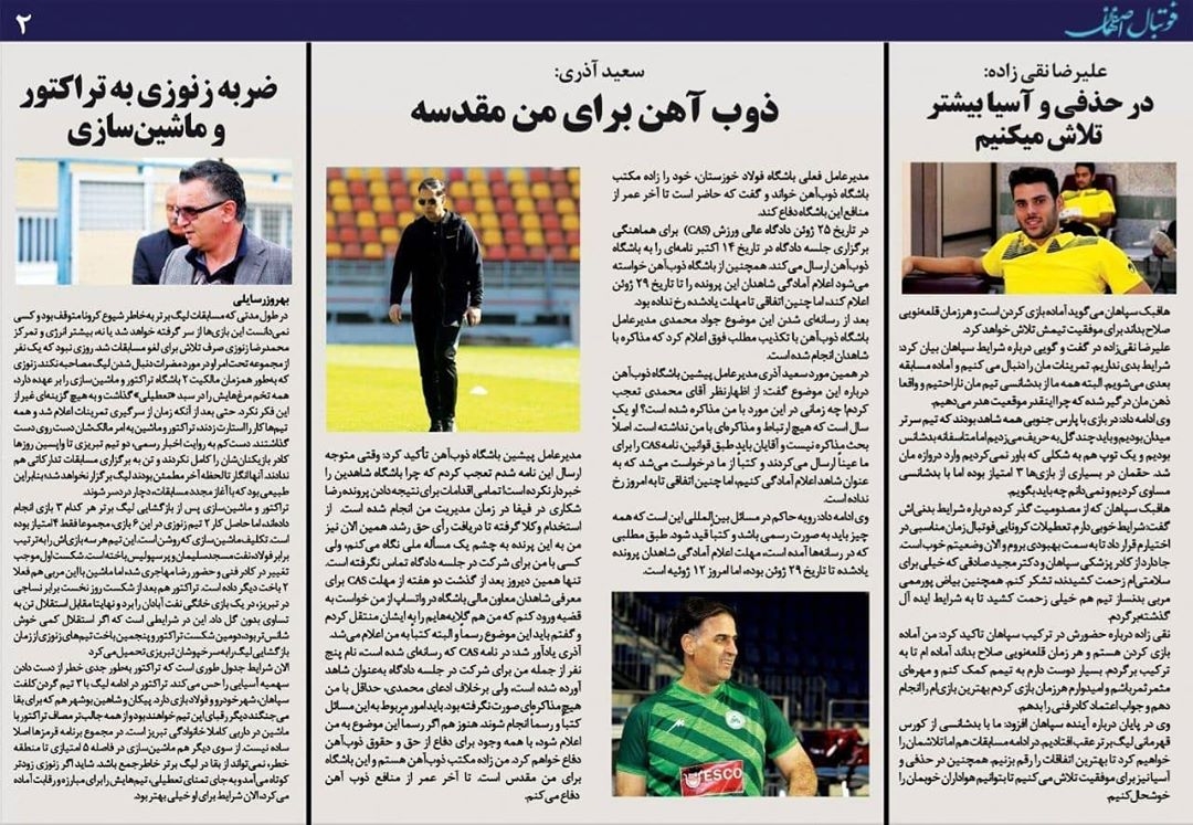 روزنامه الکترونیک فوتبال اصفهان چهارشنبه 25 تیر 99
