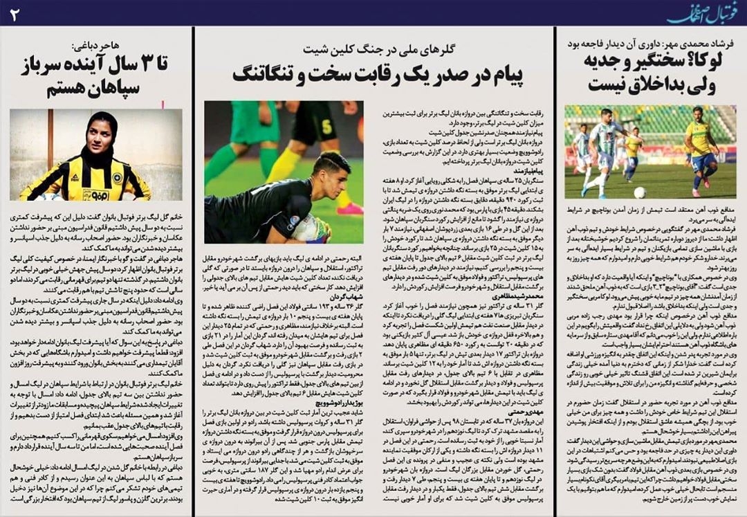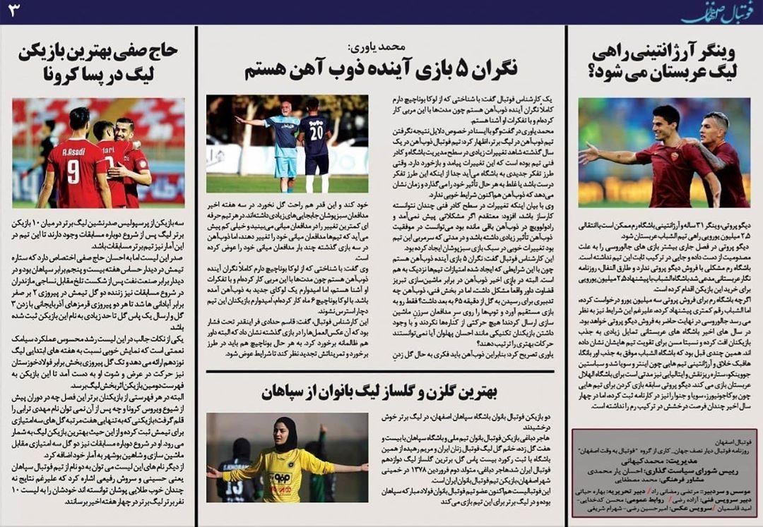 روزنامه الکترونیک فوتبال اصفهان دوشنبه 30 تیر 99