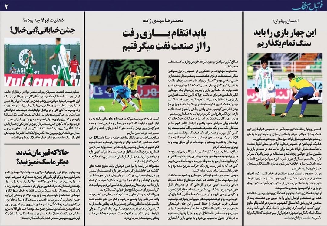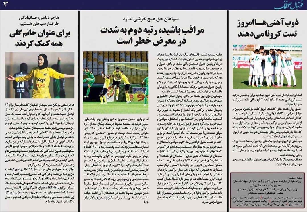 روزنامه الکترونیک فوتبال اصفهان دوشنبه 6 مرداد 99