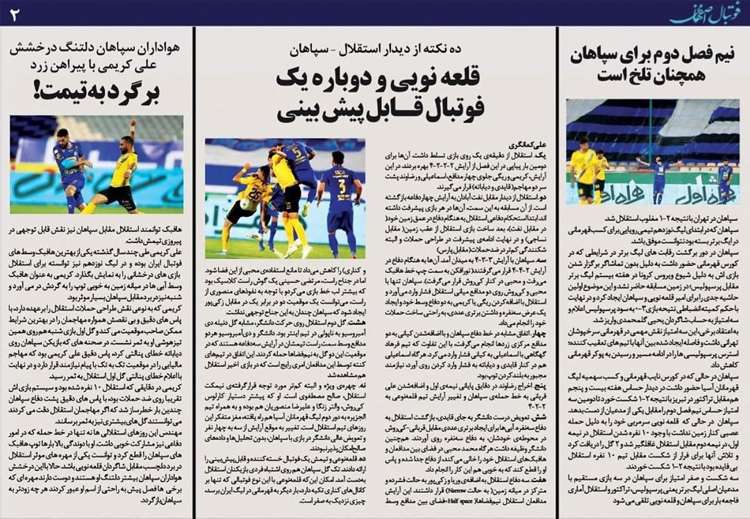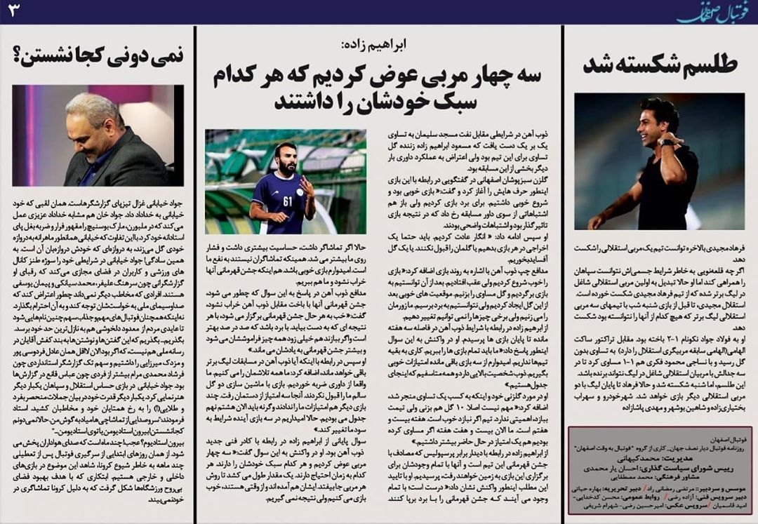روزنامه الکترونیک فوتبال اصفهان دوشنبه13 مرداد 99