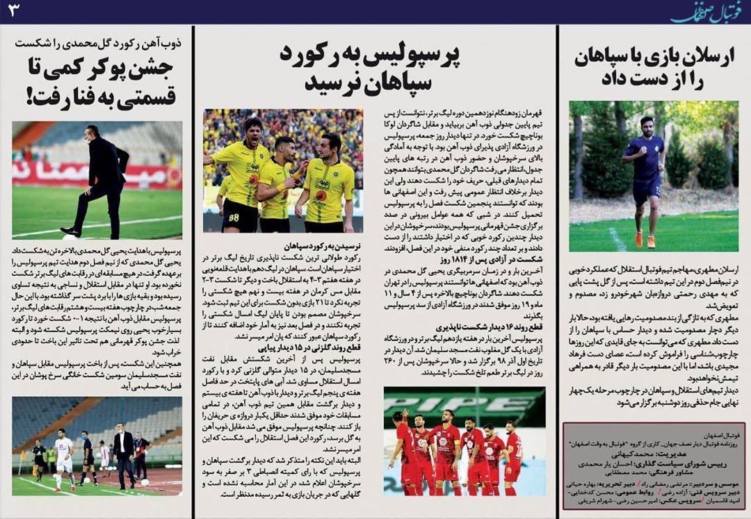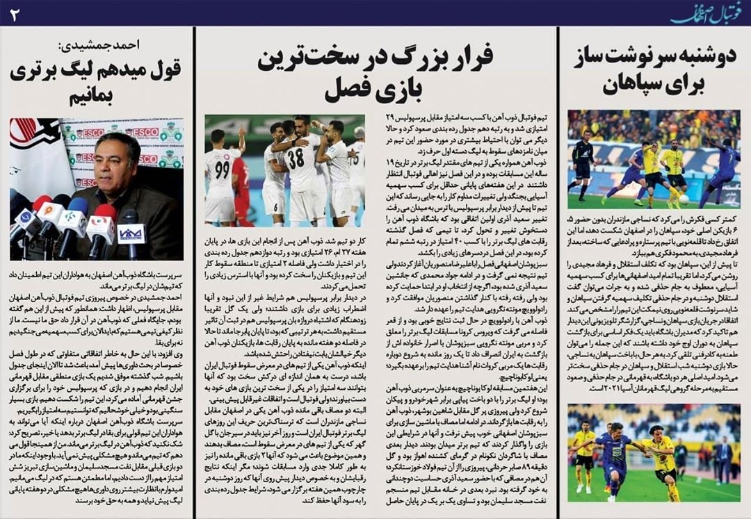 روزنامه الکترونیک فوتبال اصفهان یکشنبه 19 مرداد 99