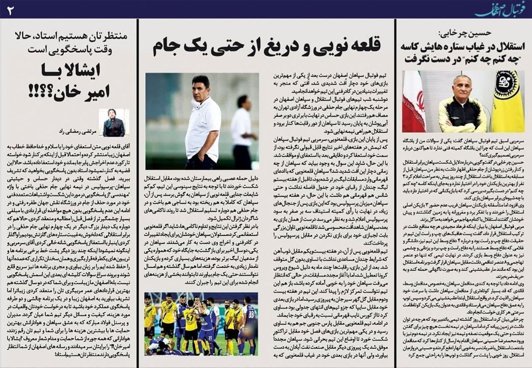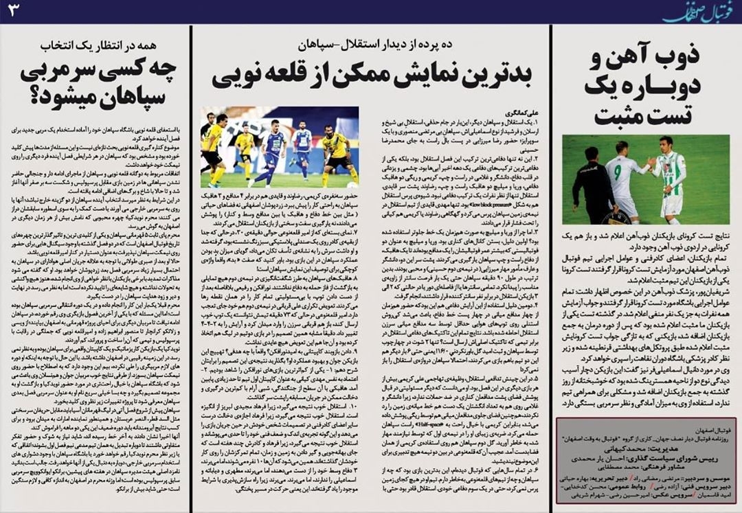 روزنامه الکترونیک فوتبال اصفهان چهارشنبه 22 مرداد 99