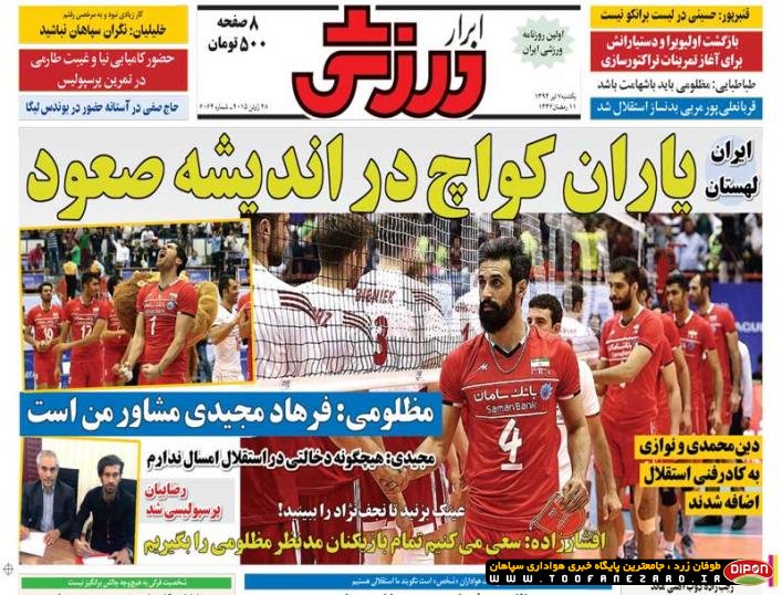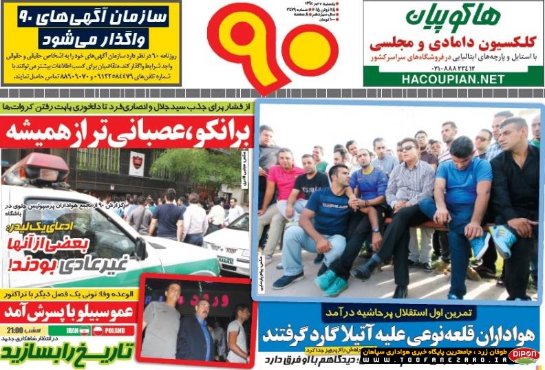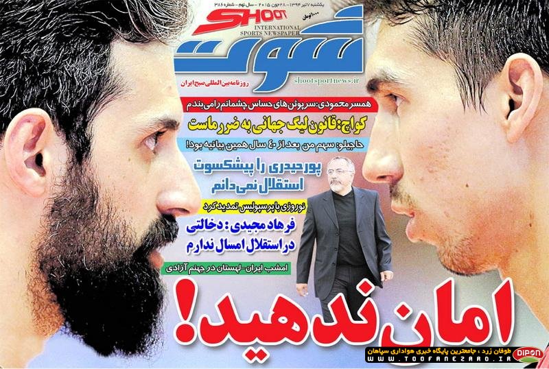 مطبوعات ورزشی کشور روزنامههای صبح یکشنبه، 7 تیر شامل صفحه یک روزنامههای: ابرار ورزشی، شوت، گل، نود، خبر ورزشی، ایران ورزشی، هدف