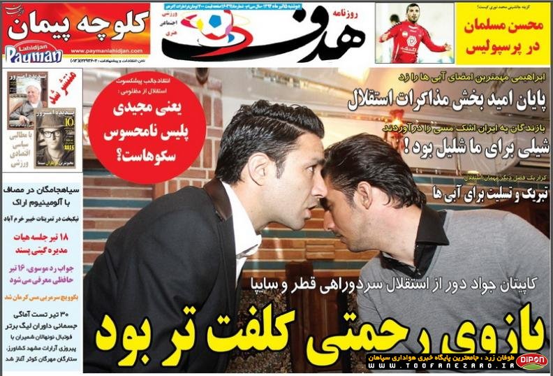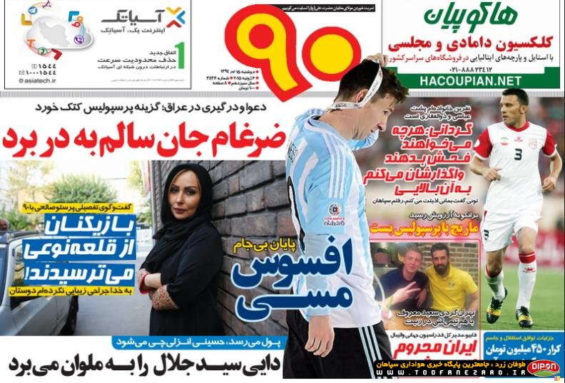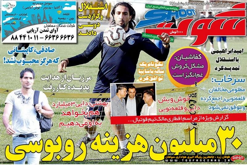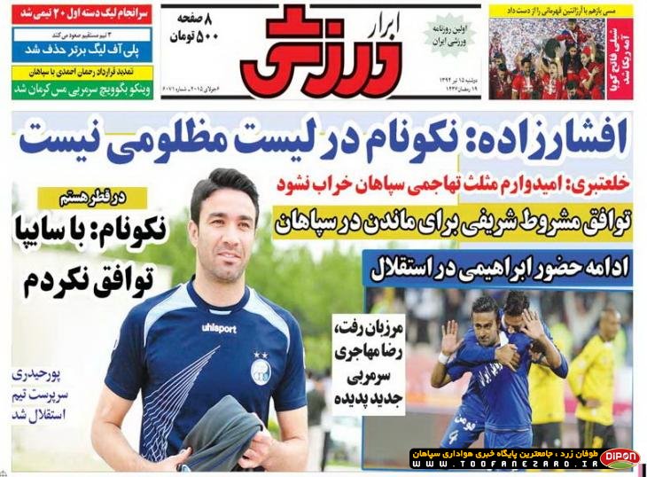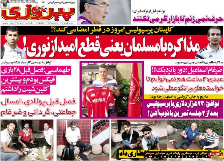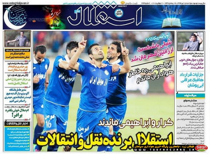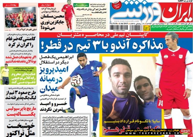 مطبوعات ورزشی کشور روزنامههای صبح دوشنبه، 15 تیر شامل صفحه یک روزنامههای: ابرار ورزشی، شوت، نود، خبر ورزشی، ایران ورزشی، هدف، پیروزی، استقلال