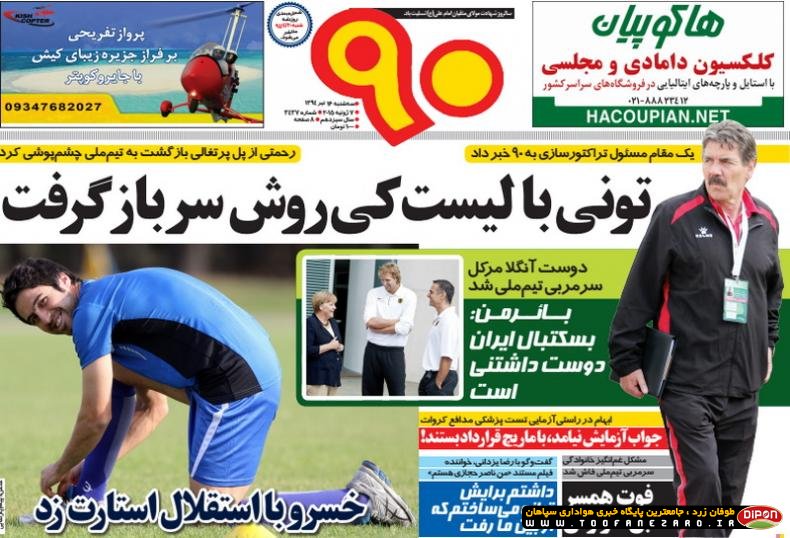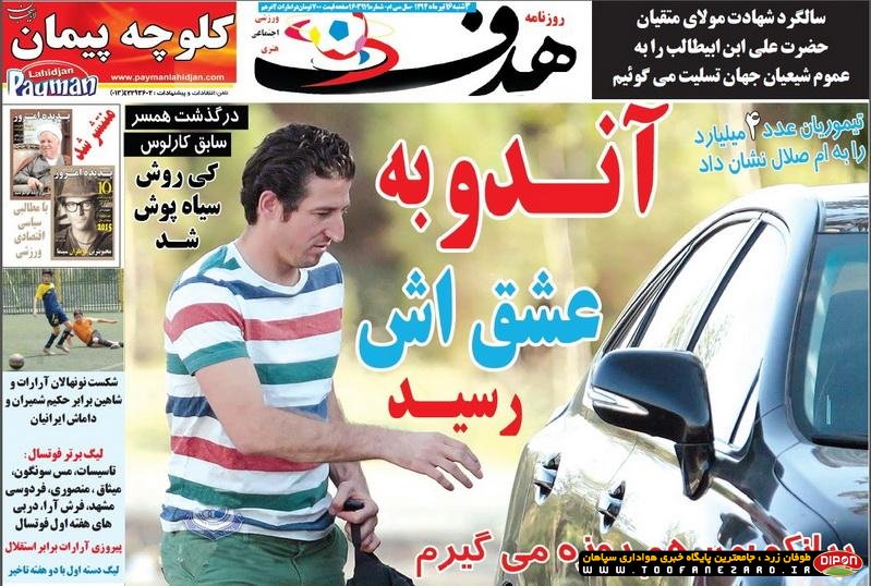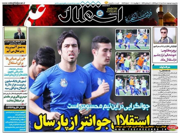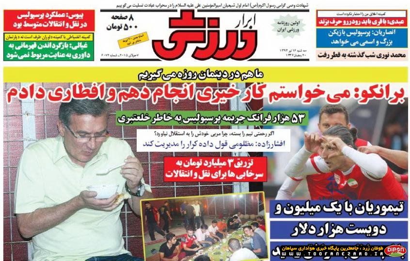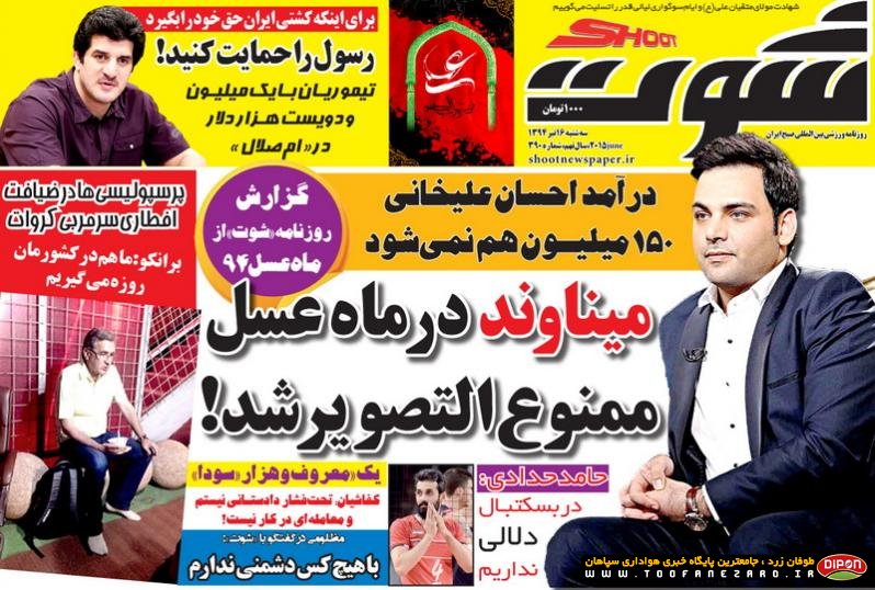 مطبوعات ورزشی کشور روزنامههای صبح سه شنبه، 16 تیر شامل صفحه یک روزنامههای: ابرار ورزشی، شوت، نود، ایران ورزشی، هدف، پیروزی، استقلال