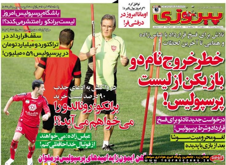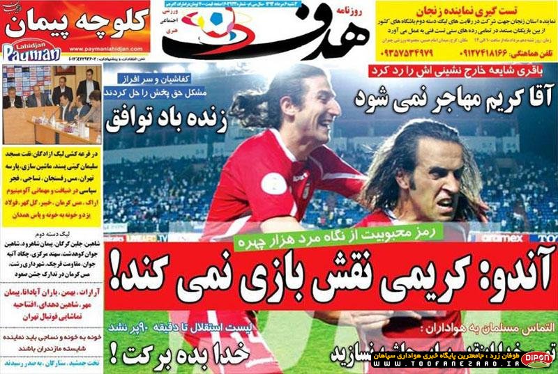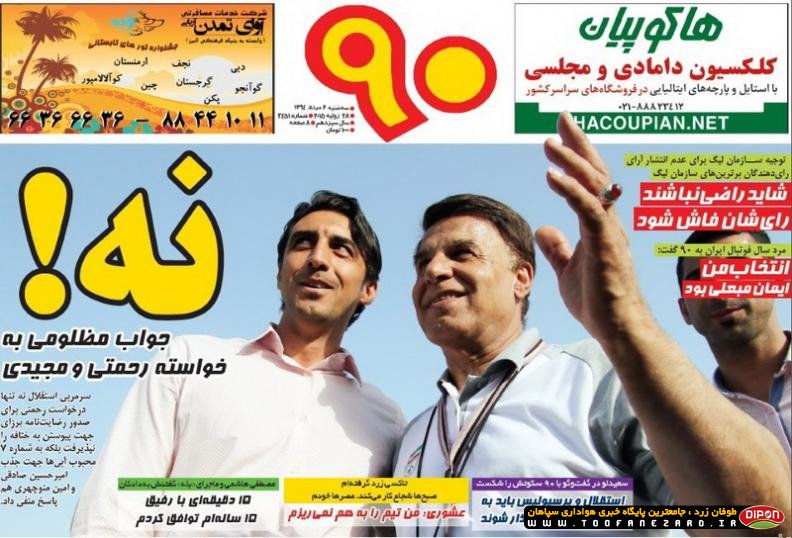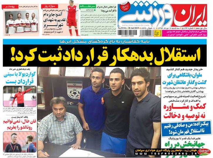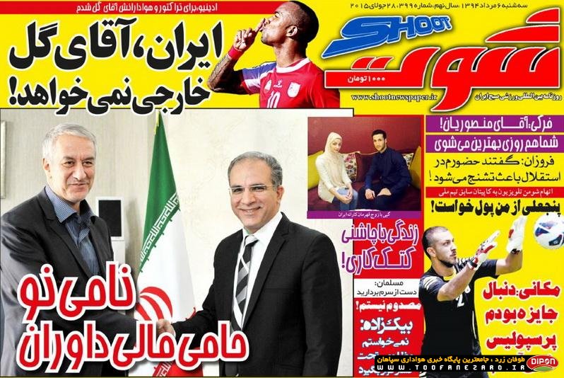 مطبوعات ورزشی کشور روزنامههای صبح سه شنبه، 6 مرداد شامل صفحه یک روزنامههای: خبر ورزشی، گل، ابرار ورزشی، پیروزی، نود، ایران ورزشی، شوت، هدف، استقلال جوان