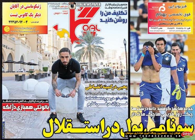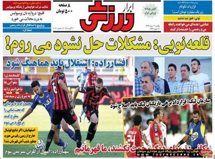 مطبوعات ورزشی کشور روزنامههای صبح یکشنبه، 11 مرداد شامل صفحه یک روزنامههای: خبر ورزشی، گل، ابرار ورزشی، استقلال جوان، پیروزی، ایران ورزشی، نود