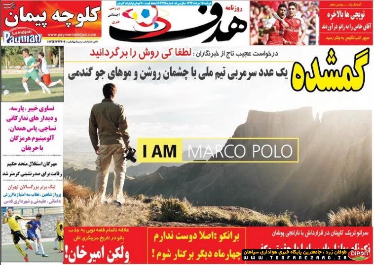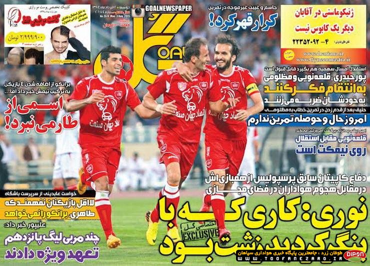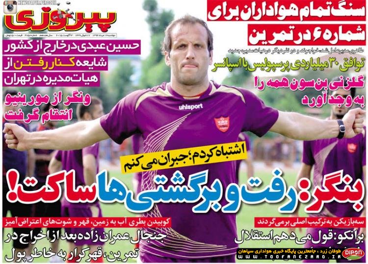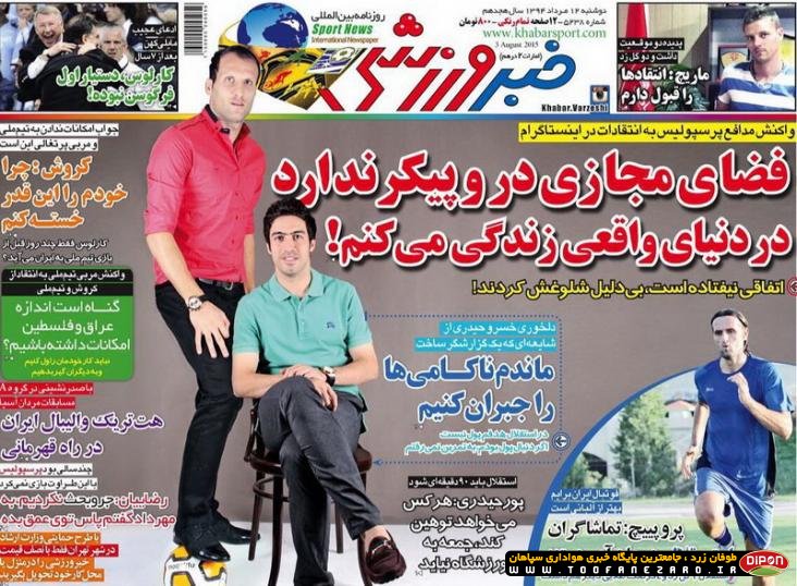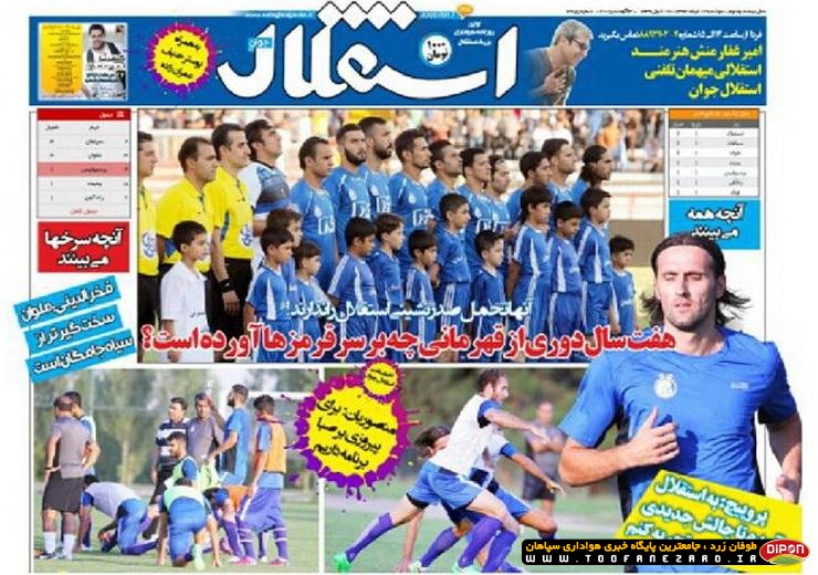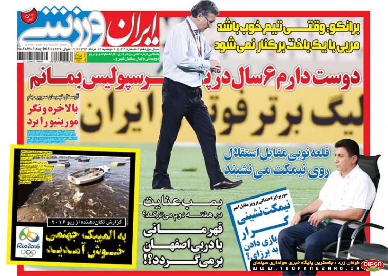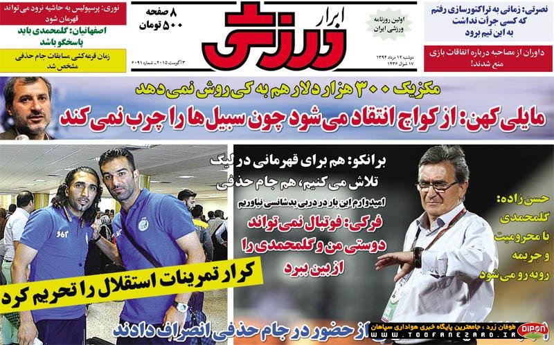 مطبوعات ورزشی کشور روزنامههای صبح دوشنبه، 12 مرداد شامل صفحه یک روزنامههای: نود، ایران ورزشی، هدف، ابرار ورزشی، پیروزی، خبر ورزشی، گل، استقلال جوان